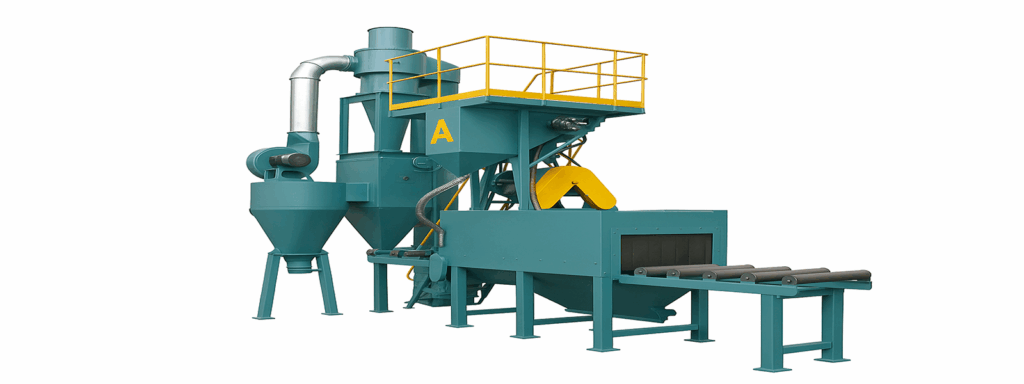 Unsere Sandstrahldurchlaufanlage (Giethard) ermöglicht effizientes und wirtschaftliches Strahlen großer Mengen an Stahlträgern, Maschinenbauteilen und Industriemetallen.